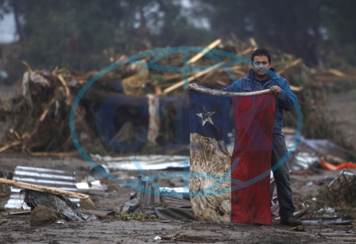 ABC News reports that the subject, Bruno Sandoval, returned to the spot where his home once stood in Pelluhue to look for his belongings. He found the tattered flag among the ruins, and amazingly, an AP photographer was there to capture it. Talk about timing.