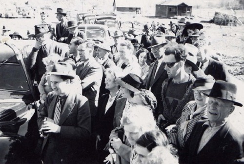 See the man in sunglasses and logo shirt in the bottom right of the above photo? It appears along with hundreds of others in Ontario’s Bralorne-Pioneer Museum’s online exhibit, and a few scrupulous internet observers felt he was too modern for the 1940-era photo. So they claimed he must be a time traveler, a real-world Marty McFly.