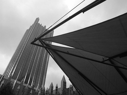 Memorial Day I was walking down Liberty Avenue shooting pictures. Because of the impending storms, there were some really cool reflections of Midtown Towers and EQT on the surface of Two PNC.