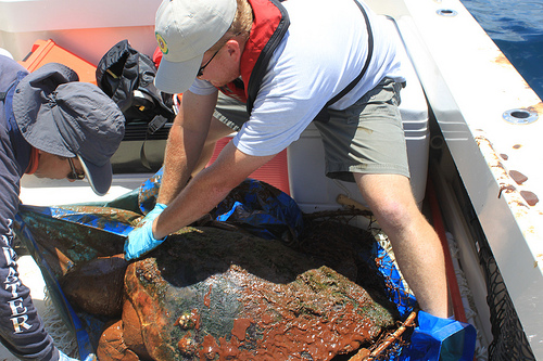 Rescued sea turtle. Photo by Louisiana Department of Wildlife and Fisheries