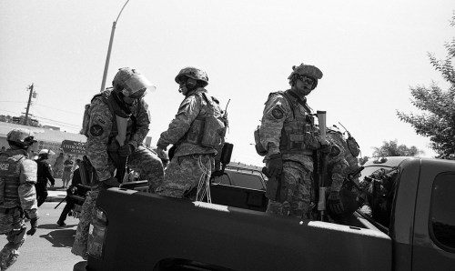 On July 21, Manuel Diaz, 25, was shot and killed by members of the Anaheim Police Department despite being unarmed. The following night Joel Matthew Acevedo, 21, and a suspected gang member was shot to death by anti-gang officers after he allegedly fired upon them. The deaths marked the fifth and sixth officer-involved shootings of this year, leading to peaceful and violent protests that have stretched out over two weeks. Both deaths are being investigated by the Orange County district attorney’s office and the U.S. attorney’s office. The FBI has also agreed to looked into the shootings to determine whether or not, if any civil rights violations occurred. The following images were captured on July 29.