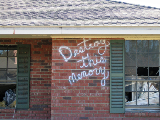 • There’s something poetic about the post-Katrina graffiti, so it makes sense that photographer Richard Misrach compiled his findings in the book “Destroy This Memory.” [Good]
